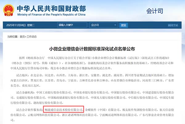 近日,據(jù)石家莊用友了解,財政部正式公布了《小微企業(yè)增信會計數(shù)據(jù)標(biāo)準(zhǔn)深化試點名單》,旨在通過統(tǒng)一會計數(shù)據(jù)標(biāo)準(zhǔn),發(fā)揮會計數(shù)據(jù)要素的價值,助力小微企業(yè)拓寬融資渠道。暢捷通成功入選“試點會計軟件服務(wù)商”,標(biāo)志著在小微企業(yè)財稅數(shù)智化服務(wù)領(lǐng)域的數(shù)據(jù)技術(shù)能力、與數(shù)據(jù)要素應(yīng)用實踐成果獲得財政部會計司、人民銀行信貸市場司的認(rèn)可。