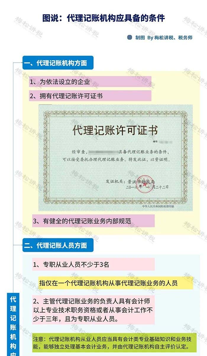 除了要求取得上述兩個(gè)證外, 對(duì)記賬人員、代理機(jī)構(gòu)內(nèi)部管理等都有要求,具體我們準(zhǔn)備了一張導(dǎo)圖,建議收藏:
